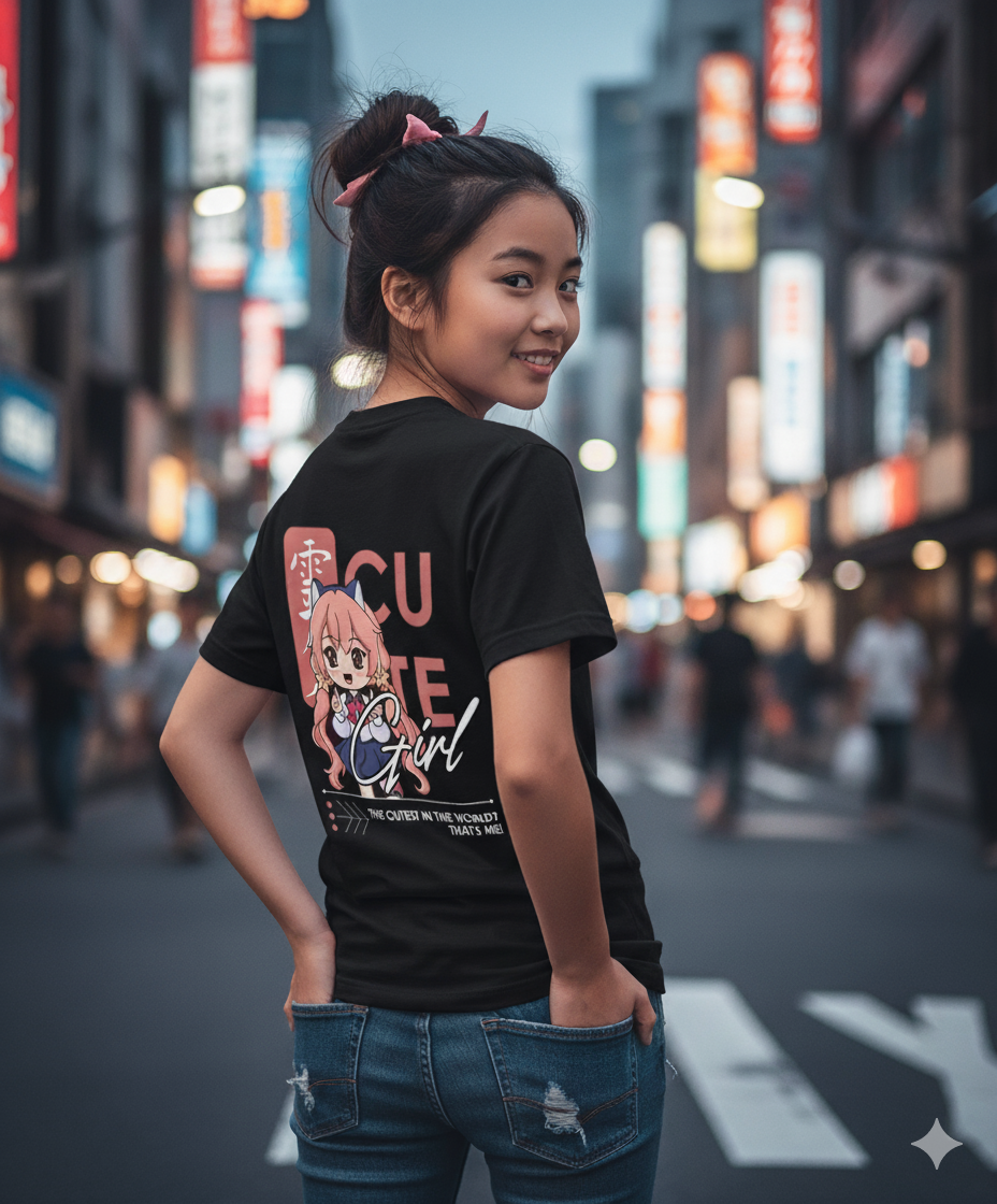 Bring your playful side to life with the Cute Girl T-shirt from Iconic Wear. Featuring a vibrant anime-inspired graphic and the bold text “The cutest in the world? That’s me!”, this tee is perfect for anime lovers and anyone who loves to stand out with a fun, confident vibe. Made from soft, premium cotton for ultimate comfort and everyday wear.