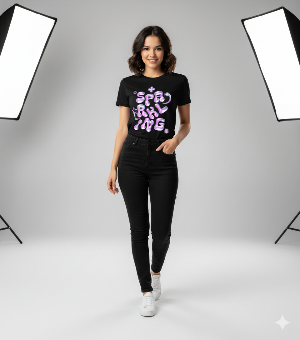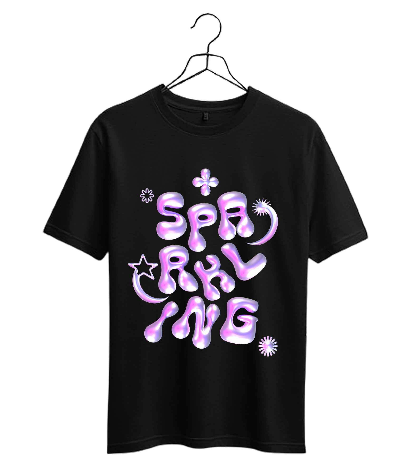 Shine bright and stand out with the Sparkling T-shirt from Iconic Wear. Featuring a fun, bubbly 3D-style “SPARKLING” print in glowing pink and purple tones, this tee brings a fresh and playful vibe to your outfit. Made with soft, premium cotton for lasting comfort, it’s perfect for those who love adding a little sparkle to their everyday look.