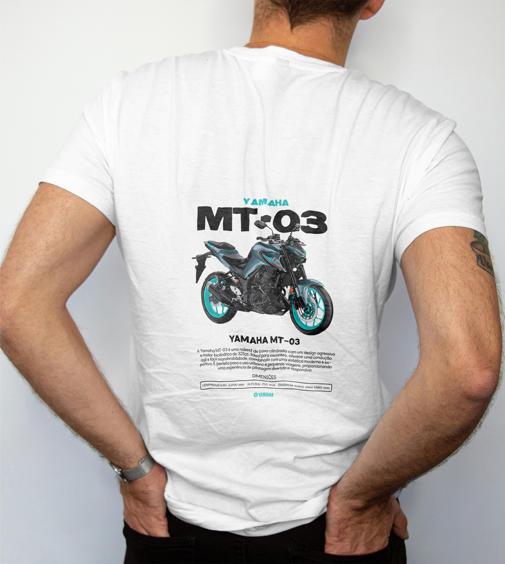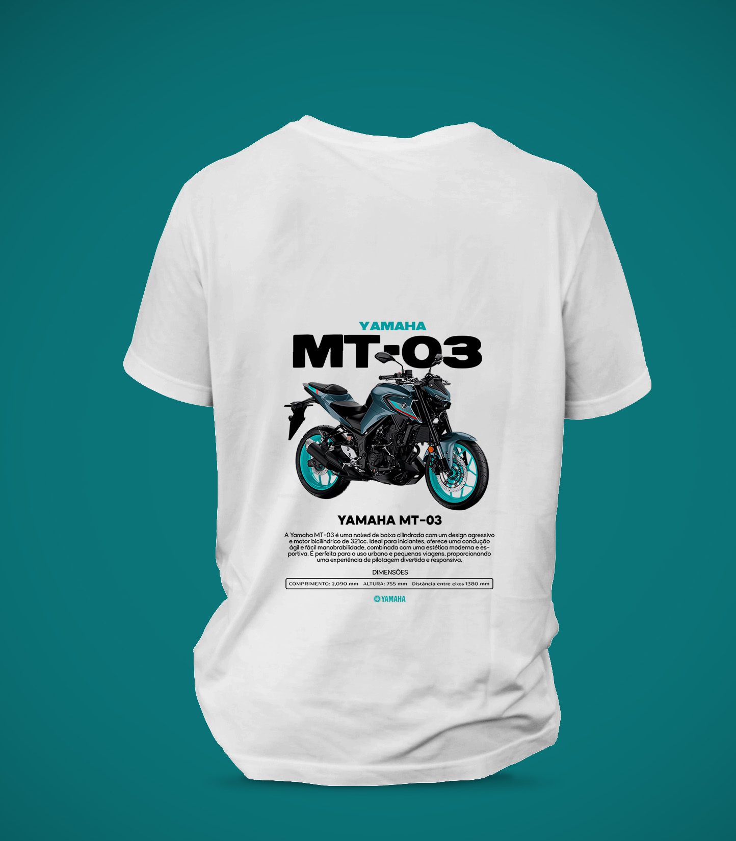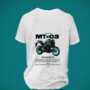 Lightweight, aggressive, and built for thrill—just like the Yamaha MT-03 itself. This t-shirt showcases the sleek and powerful design of the MT-03, making it a perfect fit for urban riders and Yamaha fans. Wear it to represent performance, precision, and street style.